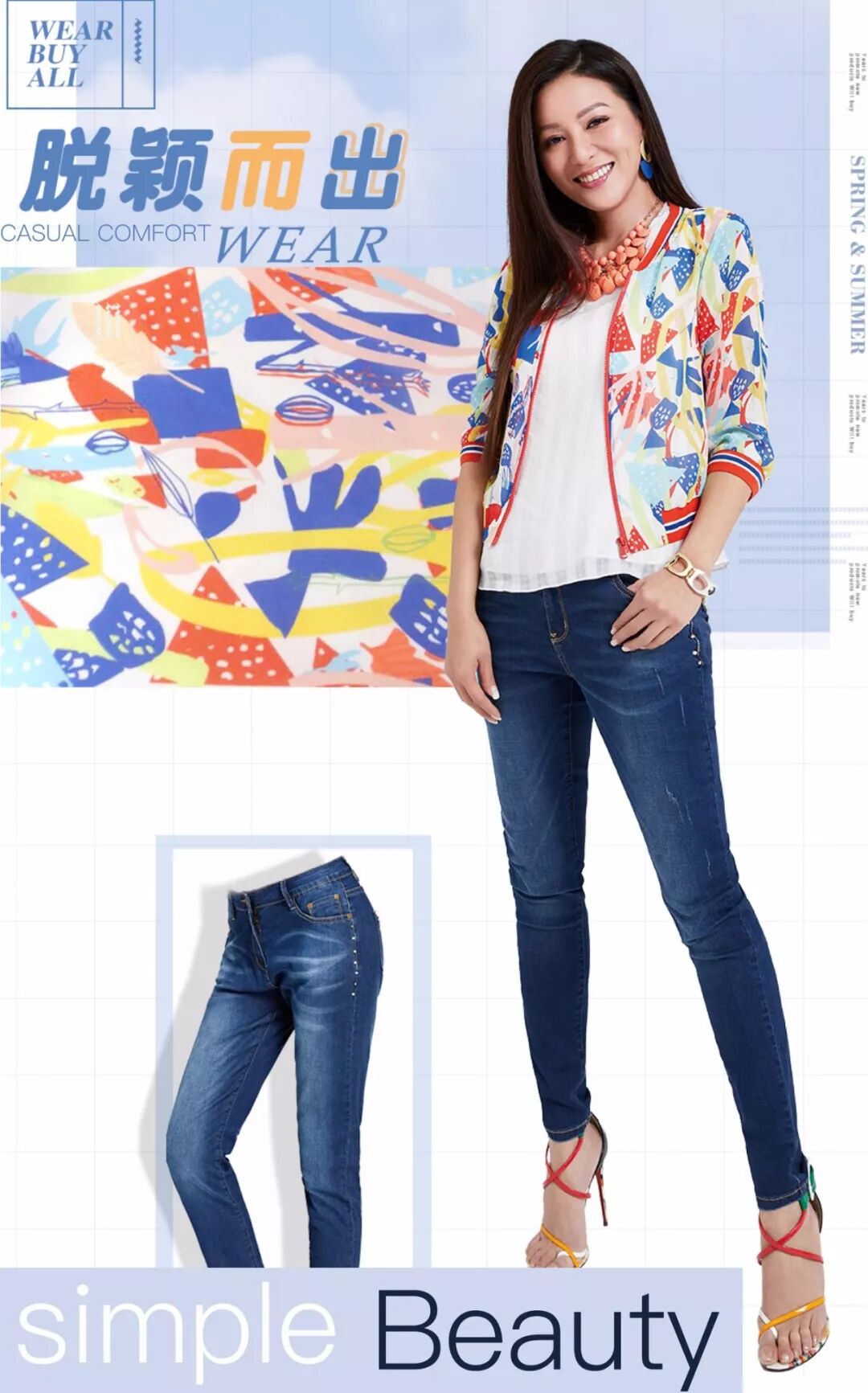 夹克衫的款式有效地拉高了腰线
